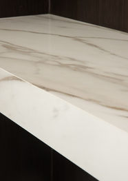 Cristallo Quartzite Backlit Bathroom / Taj Mahal Quartzite Outdoor Kitchen / Calacatta Gold Porcelain Bar